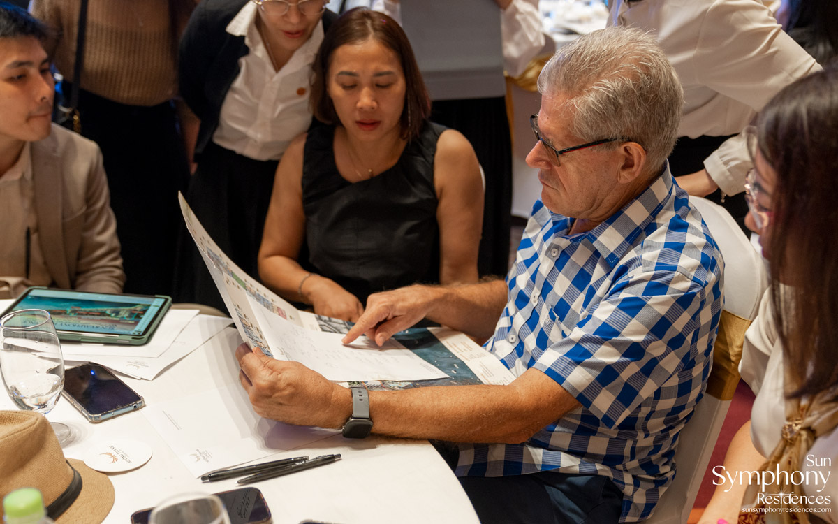 Trong số những khách hàng tham dự, có nhiều người đã bày tỏ cảm xúc và kỳ vọng của mình. Ông John Smith, một khách hàng đến từ Úc, đã chia sẻ với chúng tôi rằng ông đã làm việc tại Việt Nam được 4 năm và mong muốn sở hữu một căn nhà tại đây để ổn định cuộc sống và đón vợ con sang. Ông Smith cho biết ông rất thích Đà Nẵng bởi khí hậu ôn hòa và con người nơi đây rất thân thiện. Ngay khi biết thông tin về dự án Sun Symphony Residences được mở bán, ông đã không ngần ngại bay từ TP Hồ Chí Minh đến Đà Nẵng để tham dự sự kiện. Sau khi tìm hiểu kỹ lưỡng, ông rất hài lòng và sẽ sớm thảo luận với gia đình để chọn lựa cho mình một căn hộ ưng ý tại Sun Symphony Residences.
